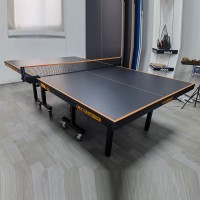 室内折叠带轮乒乓球台的材质通常是MDF板材,该材料硬度高,不易磨损,易于清洁。此外,钢材等材质也可以出现在特定的设计中。