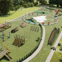 公园的设计还包括一个运动健身区,提供各种户外无动力的健身设施。这些设施包括健身器材、篮球场、足球场等。人们可以进行有氧运动、力量训练和团队球类运动,提升身体素质,增强体力和协调能力。